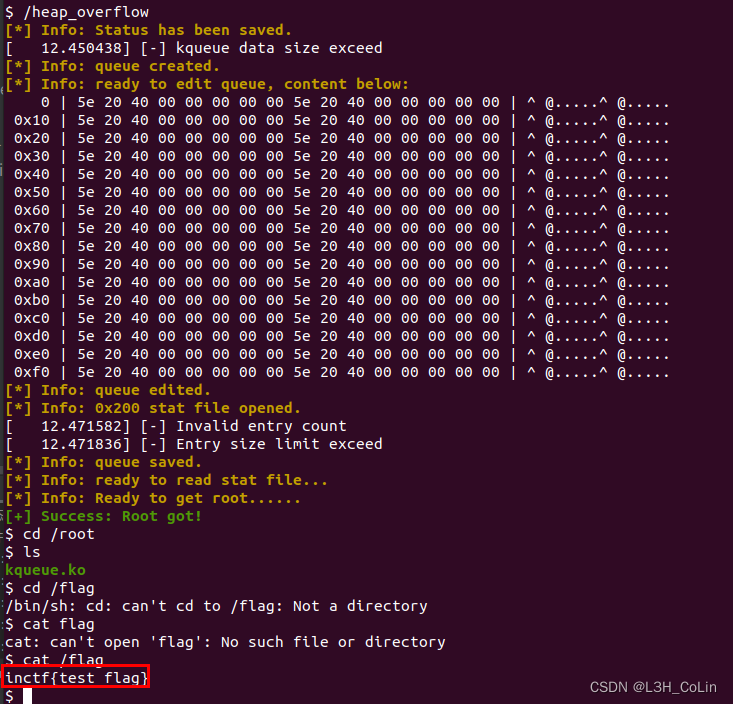 在内核态堆溢出题中,我们需要充分利用“大小相等的内存块可能会被分配到相邻位置”这一特性溢出覆盖。内核中的内存块空间没有用户态那样的块首结构,需要注意。