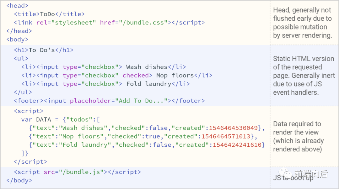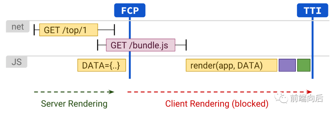 P.S.SSR 第一部分的 Server Rendering 渲染工作变成了 Streaming 传递静态 HTML 文件