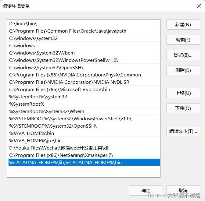 在path中添加%CATALINA_HOME%\lib;%CATALINA_HOME%\bin