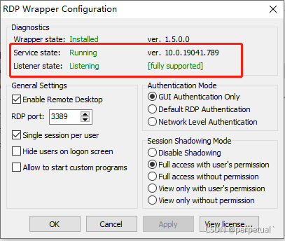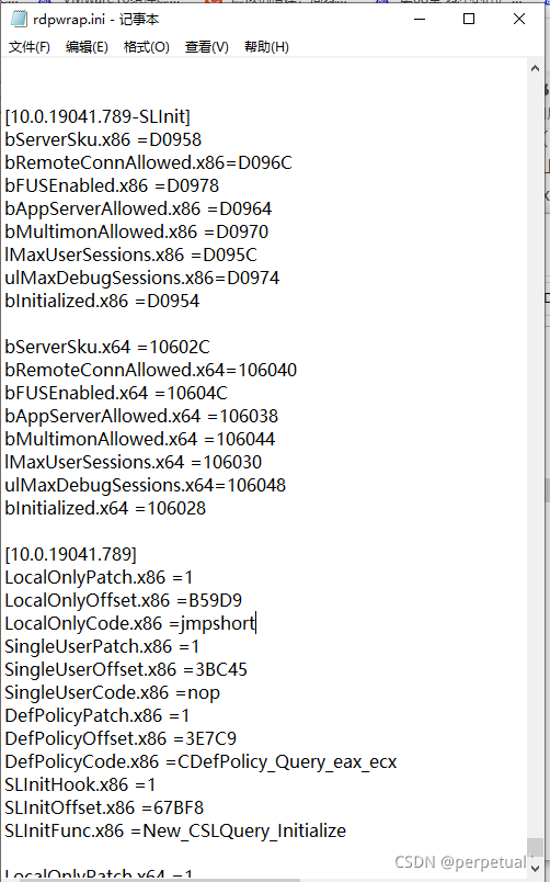 看了很多相关的文章,自己也基本一个个试过去,从网上的文章和自己的结果看,用RDP这个软件(RDP的安装不多说了,网上很多)可以实现,只更改组策略是没用的。但是RDP安装完成后,基本都会在Listener State这里报错。按照网上文章方式主要有两种:一是要替换termsrv.dll的,失败。二是替换RDP安装文件的rdpwrap.ini文件,失败。无意间打开rdpwrap.ini文件,看到里面有相应windows版本的相关配置,发现并没有18年以后更新的系统版本配置(RDP作者17年到现在并没有更新)。于是灵机一动,先去百度找版本配置,没找到。又去github上面找,终于找到一篇较为全的版本配置(最新到10.0.22000.1版本,链接:rdwap.ini for 10.0.19041.1165 · Issue #1504 · stascorp/rdpwrap · GitHub)。只要找到自己RDPconf.exe上面显示的版本信息的相关配置,复制粘贴到rdpwrap.ini文件中保存即可(故替换rdpwrap.ini文件其实是增加相应系统版本的配置),最后关机重启。按照这个方式基本可以成功,但是因为我在之前测试了组策略的关系,所以不确定要不要配置组策略,个人感觉不用。如不行,可以再试试配置组策略(网上教程很多,这里不细说了)。