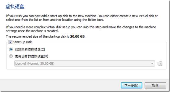 接下来的操作很简单,设置最少1GB的内存,并将虚拟硬盘保存在一个有足够剩余空间的分区上(大于20GB最好),基本上采用默认设置,一路“下一步”: