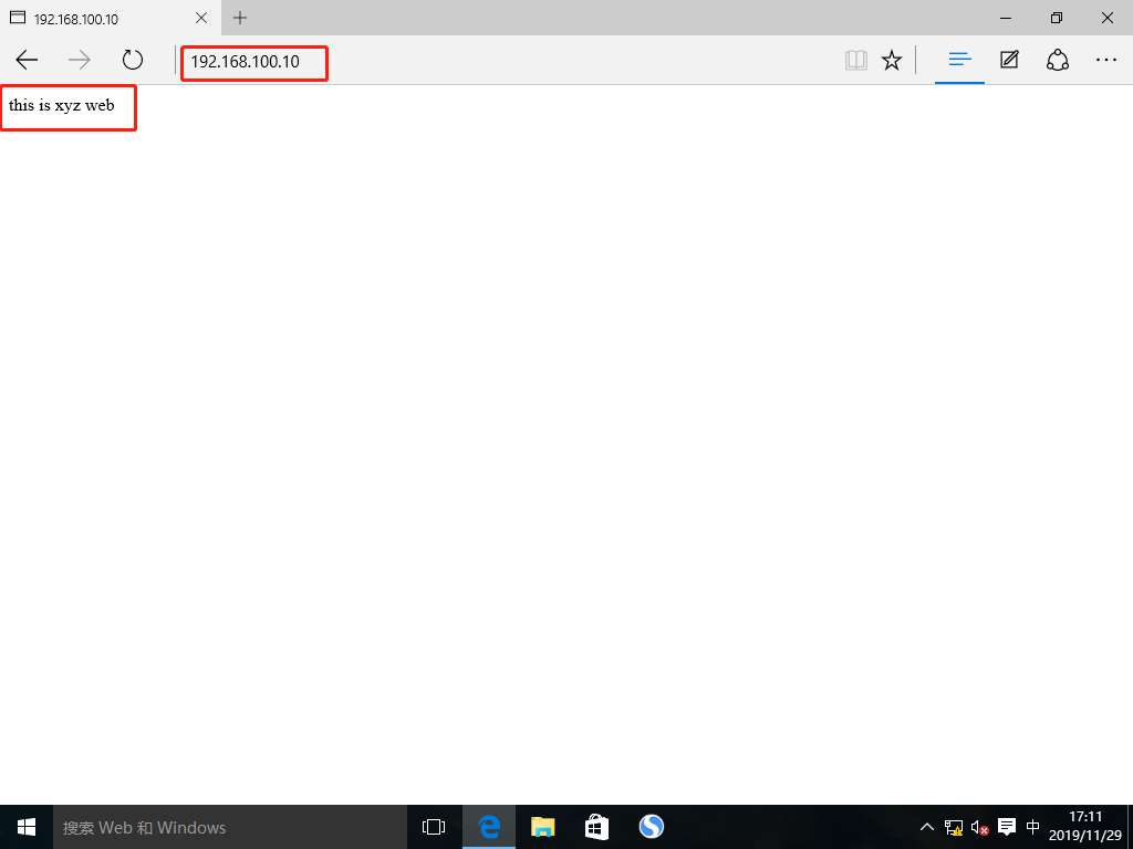 [root@localhost html]# echo "this is xyz web" > index.html #创建网站页面