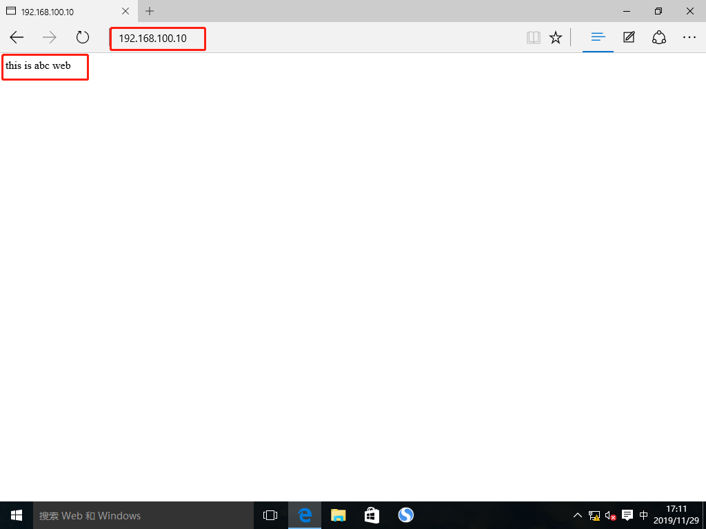 1、用win10测试主机访问虚拟IP地址:192.168.100.10