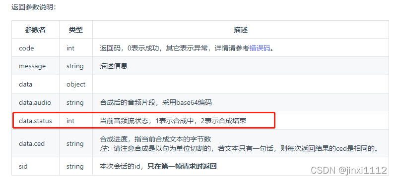(3)返回的数据为合成后的音频片段,采用base64编码