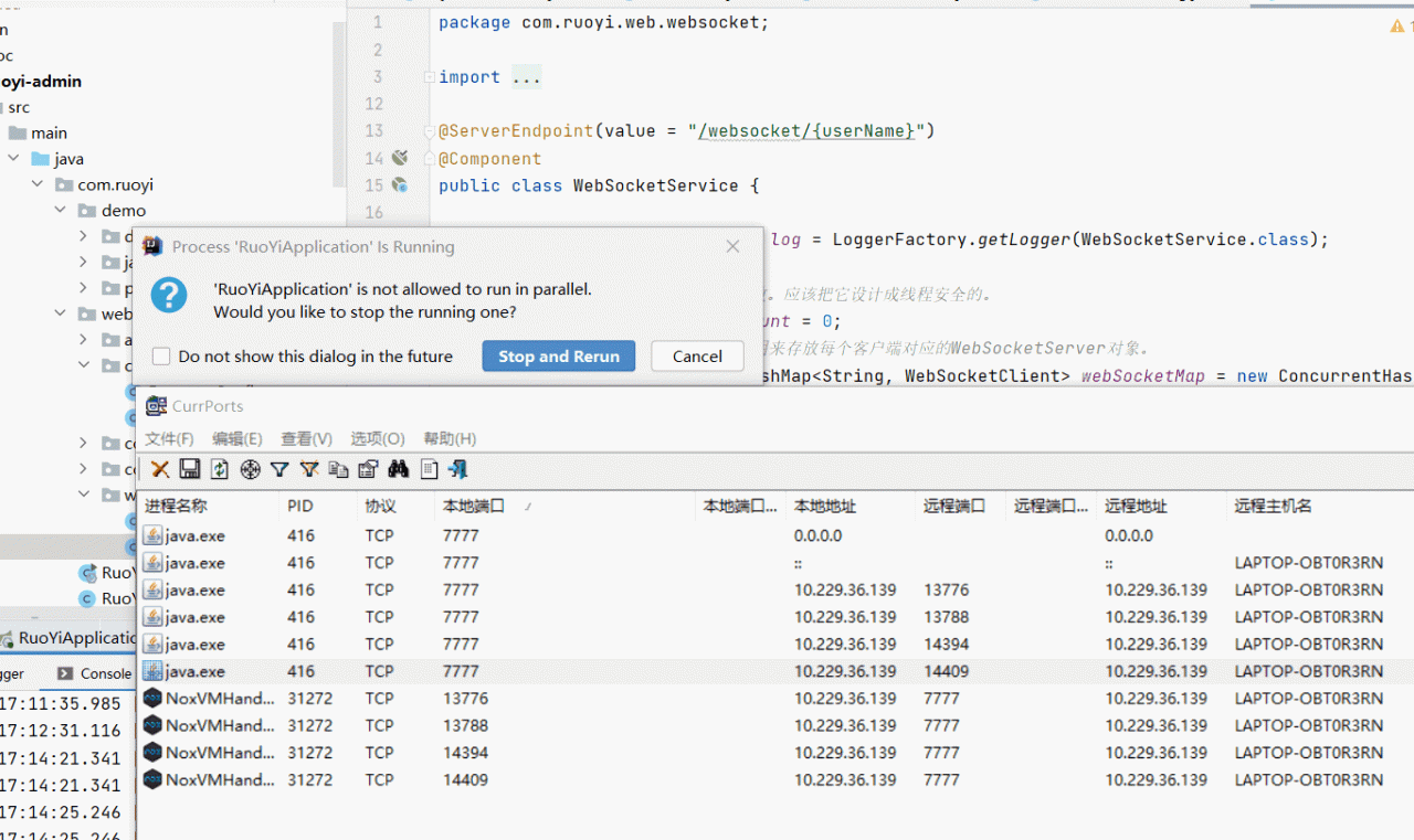 在jar包所在服务上运行exe,如果该服务器上还有其他端口服务存在,可进行筛选指定端口的连接