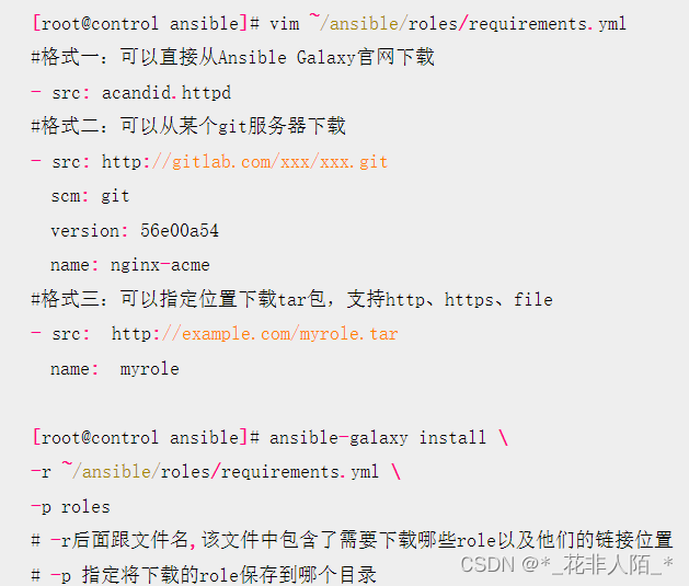 - 使用ansible-galaxy install或者编写 requirements.yml文件