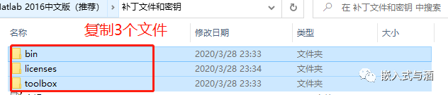 10、来到解压后的补丁文件和密钥的文件夹下,复制以下3个文件。