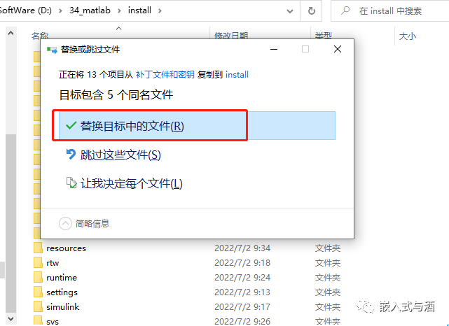 11、然后来到安装路径下,粘贴刚才复制好的三个文件即可,再点击:替换目标中的文件。