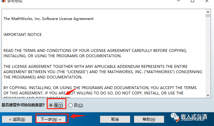 3、点击“是Y"接受许可协议,再点击 下一步。
