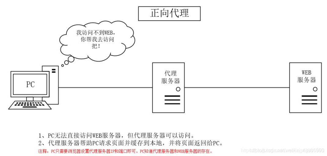 正向代理(forward proxy):是一个位于客户端和目标服务器之间的服务器(代理服务器),为了从目标服务器取得内容,客户端向代理服务器发送一个请求并指定目标,然后代理服务器向目标服务器转交请求并将获得的内容返回给客户端。