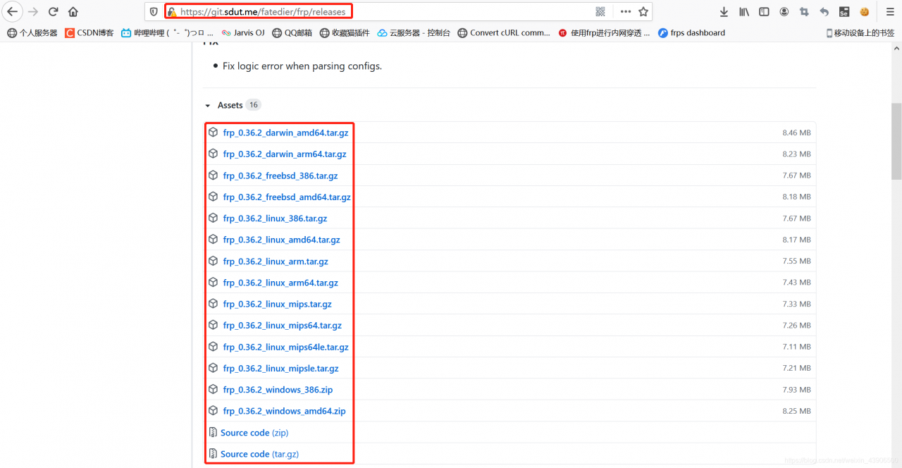 wget https://git.sdut.me/fatedier/frp/releases/download/v0.36.2/frp_0.36.2_linux_386.tar.gz如果是其他架构选择特定架构即可