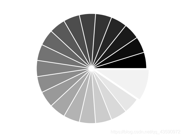 plt.pie(Z, explode=Z*.05, colors = ['%f' % (i/float(n)) for i in range(n)])