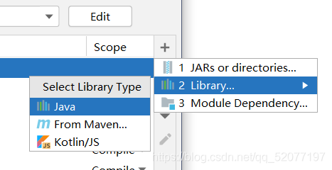 此时点击右边加号,点击2.library,再点击Java,选择IDEA安装目录,在lib文件夹中找到junit-4.12