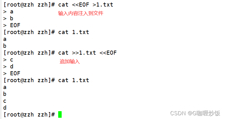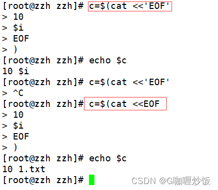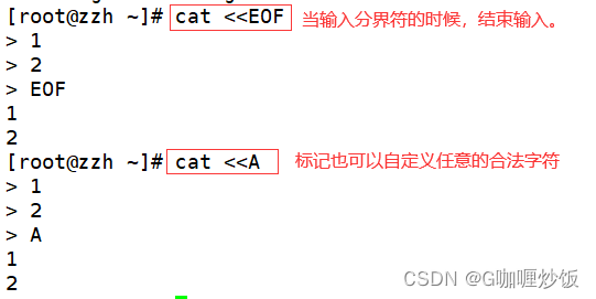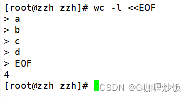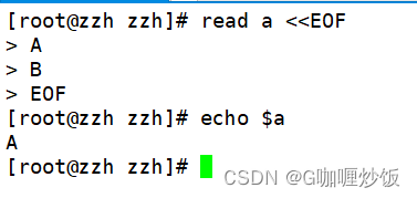 #通过read 命令接收输入并打印,输入值是两个EOF标记之间的部分,作为变量 a 的值