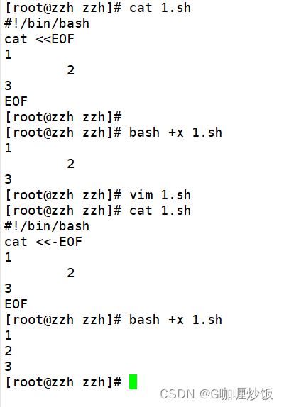 EOF前面添加“-”能够去掉行首的tab制表符