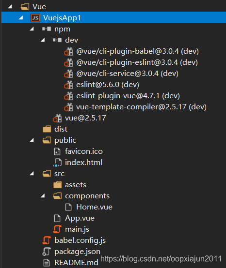 Visual Studio 2019 Vue项目 创建成功后可看到如下结构 Visual Studio 2019配置vue项目
