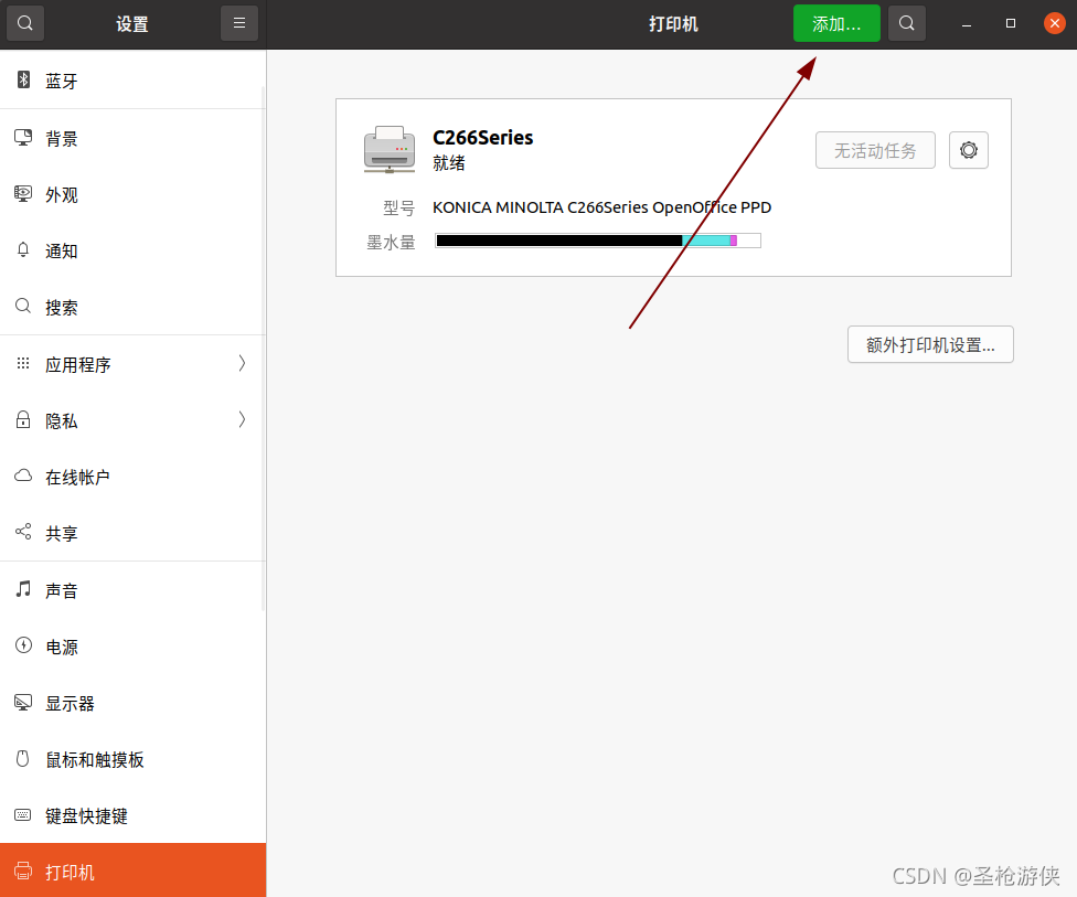 2. 点击额外打印机设置