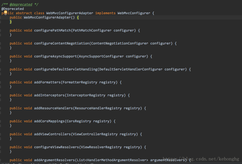 查看源码发现: WebMvcConfigurerAdapter只是对WebMvcCofigurer的空实现,而WebMvcConfigurationSupport的实现的方法更全面