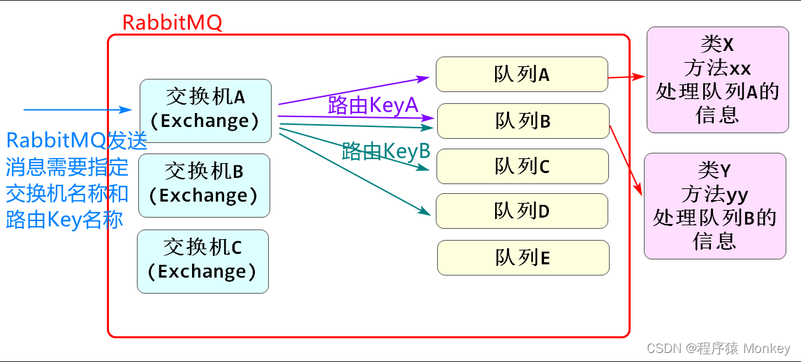 RabbitMQ是使用交换机\路由key指定要发送消息的队列