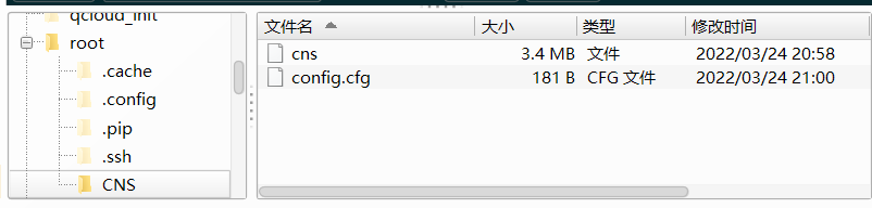 在下方的root文件夹中新建一个名为CNS的文件夹。