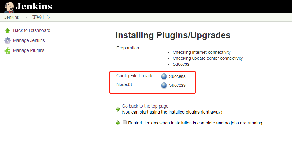 显示上面两行则表示安装成功, 然后回到首页, 点击’系统管理’->‘全局工具配置’: