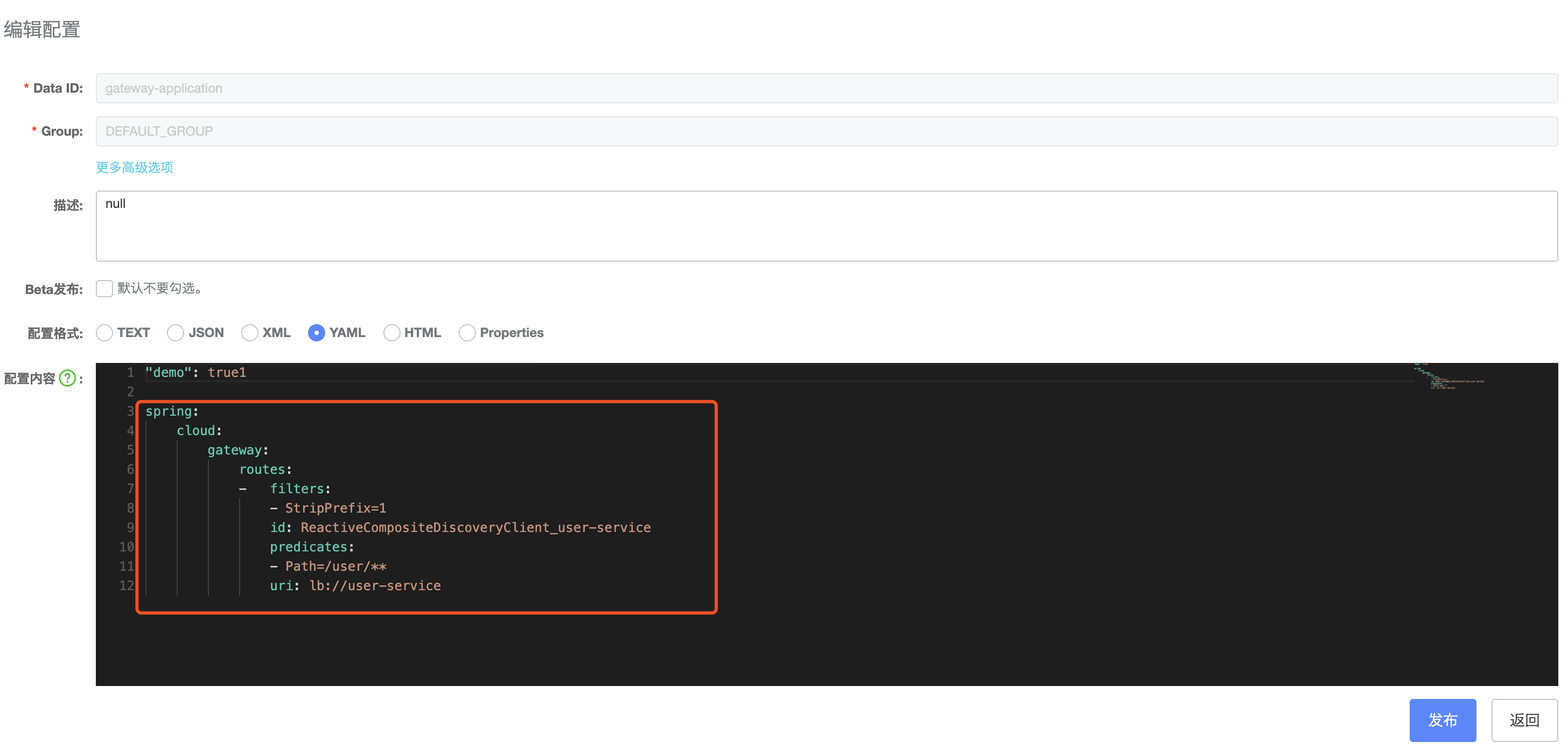 创建 application.yaml 配置文件,添加 Spring Cloud Gateway 相关配置。配置如下: