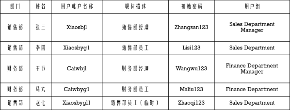 公司内有5位员工,为了完成项目任务,需要为每一名员工,在他们所可能使用所有计算机上创建账户。由于所属部门不同,职位不同,为了今后分配权限的便利,还需要根据用户所属部门分别创建用户组。部门经理拥有更多的资源权限,因此,为两位部门经理也设置了专门的账户组。(第一个用户:界面,第二个用户:命令行,第三、四、五个用户:批量处理)