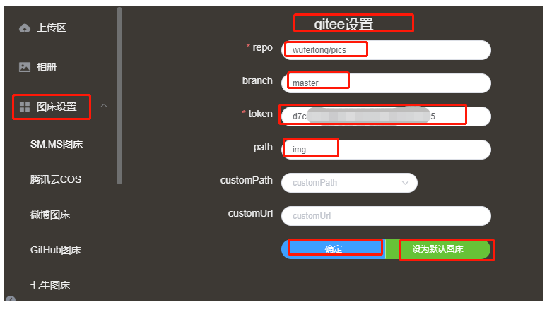 安装完成后,再图床设置里面会多出一个Gitee图床
