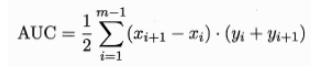 AUC(Area Under Curve)为ROC曲线的面积,面积可以通过梯度面积法求解。