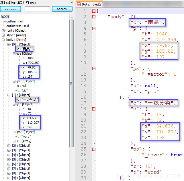 JSON数据结构中Array和Object可以相互嵌套,如下图所示,body是一个Array,其中的元素为Object([0], [1], [2] … ),对象[0]中即包含普通的键值对c:"商品",也包含Object p(其中包含5个键值对)。现在需要提取方框标注部分的键值。使用VBA按照字符串逐个去解析肯定也可以实现,但是会比较复杂,JSON来自于JavaScript,那么使用JavaScript肯定是最简洁的解决方案。