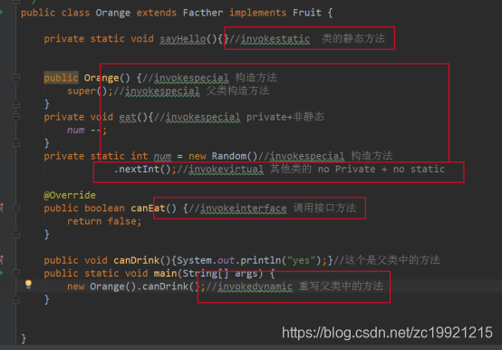 我们再从JVM层面分析下,JVM里面是通过哪里指令来实现方法的调用的: