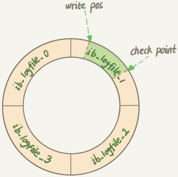 InnoDB的redo log是固定大小的,比如可以配置为一组4个文件,每个文件的大小是1GB,循环使用,从头开始写,写到末尾就又回到开头循环写(顺序写,节省了随机写磁盘的IO消耗)