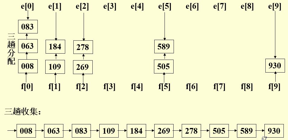 基数排序是一种非比较型整数排序算法,其原理是将整数按位数切割成不同的数字,然后按每个位数分别比较。由于整数也可以表达字符串(比如名字或日期)和特定格式的浮点数,所以基数排序也不是只能使用于整数。