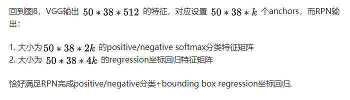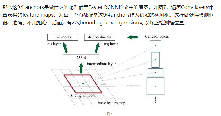 假设在conv5 feature map中每个点上有k个anchor(默认k=9),而每个anhcor要分positive和negative,所以每个点由256d feature转化为cls=2k scores;而每个anchor都有(x, y, w, h)对应4个偏移量,所以reg=4k coordinates