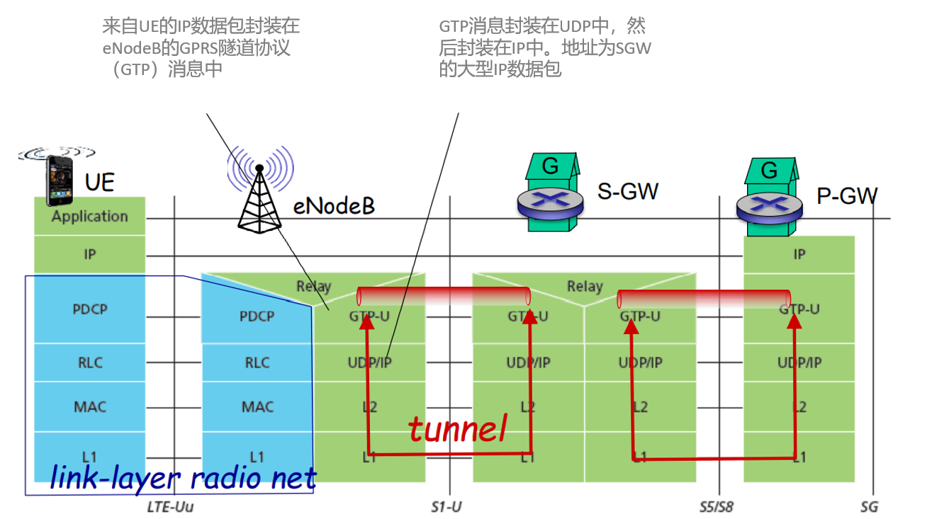 ❖ 所有IP核心:从基站到网关的IP数据包隧道(通过核心IP网络)