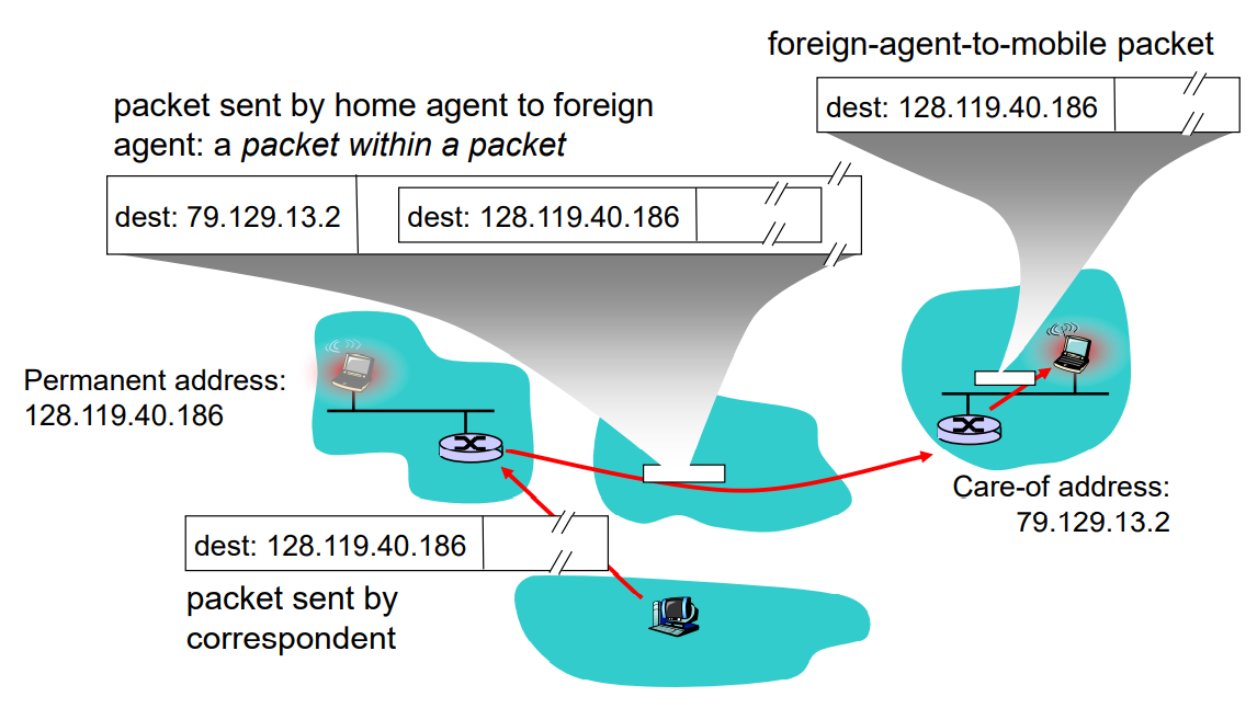 ▪ 转交地址:归属代理用于将数据报转发到移动设备