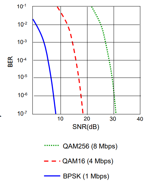 ▪ 给定信噪比:选择满足误码率要求的物理层,提供最高的吞吐量。SNR可能随移动性而变化:动态适应物理层(调制技术、速率)