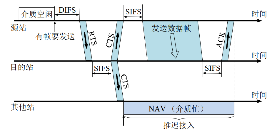 一个主机从期望发送数据开始,到确认数据被接收方正确接收:DIFS+3SIFS