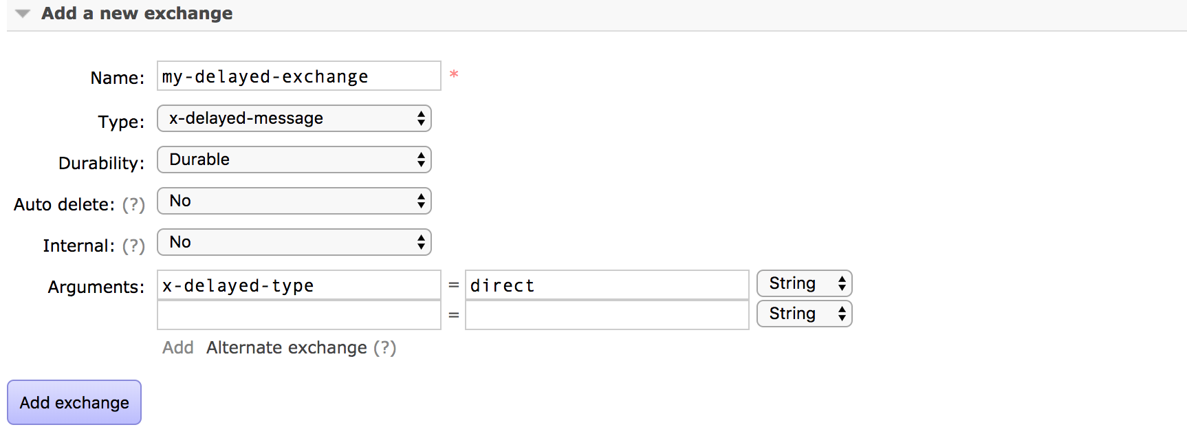 rabbitmq添加延时通道时报错rabbitmq添加延时通道时报错'x-delayed-type' must be an existing exchange type解决方案:版权声明:本文为u011649691原创文章,遵循CC 4.0 BY-SA版权协议,转载请附上原文出处链接和本声明。原文链接:https://blog.csdn.net/u011649691/article/details/125745590