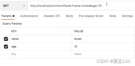 //普通参数:请求参数与形参名称对应即可完成参数传递