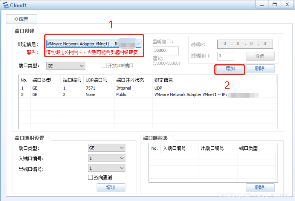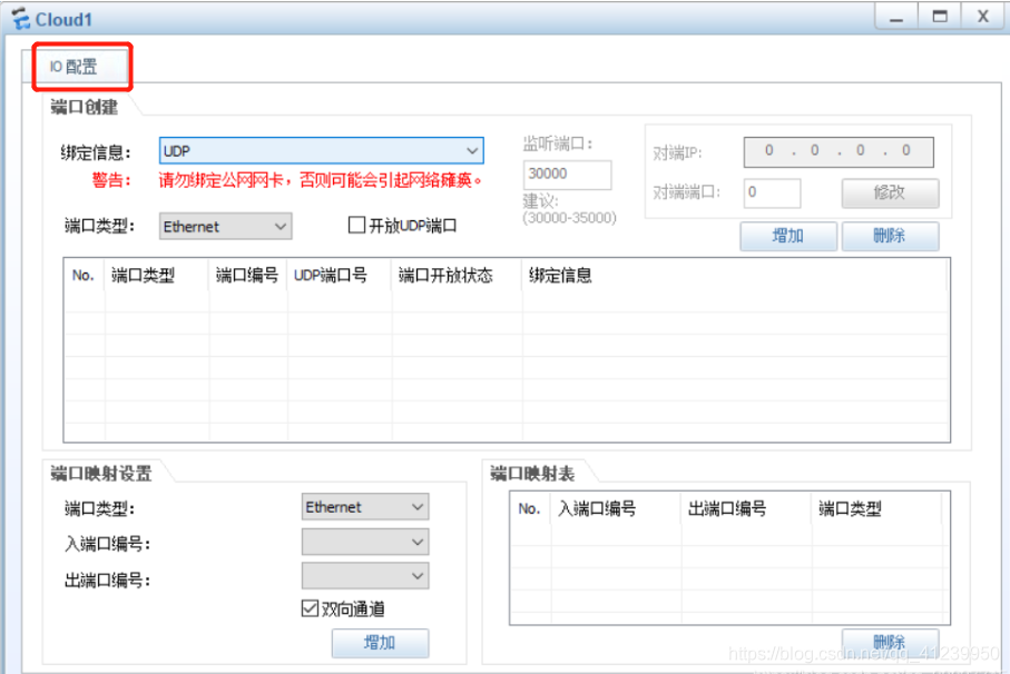 配置完成的局域网络,通过配置Cloud设备,将局域网络与物理机虚拟网卡进行连通,通过物理机虚拟网卡模拟互联网,使物理机可以访问局域网中各个PC机。