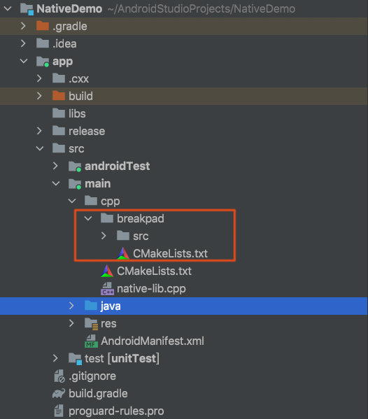 然后在自己项目的 native 文件中对 breakpad 进行初始化,如下
