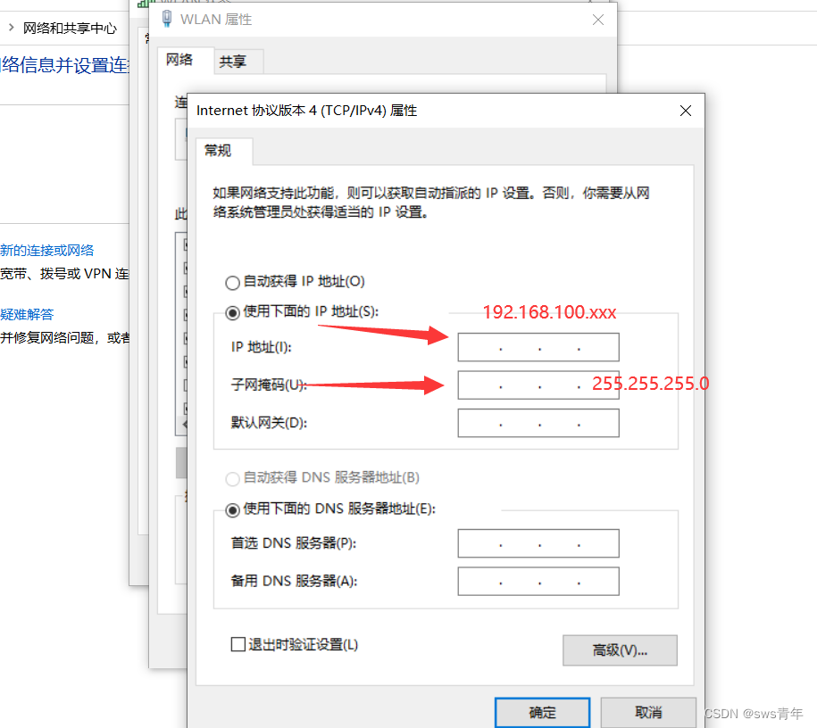 配置PC,通过网线将机械臂与PC连接,IP地址的前三位需要和机械臂的IP地址保持一样,最后一位任意,如设置为192.168.100.121