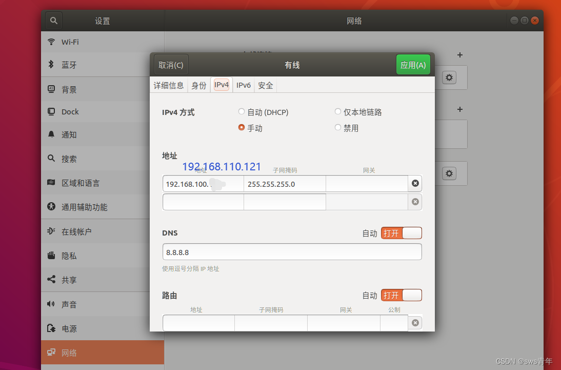再将虚拟机网络IP地址设置为192.168.100.121;