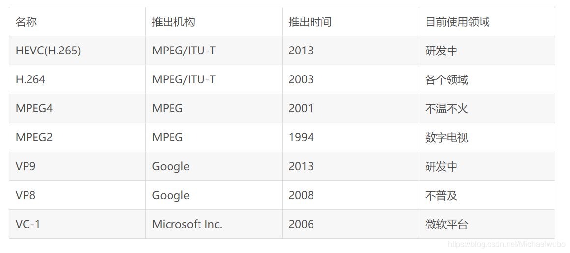 接下来的几节我们将会列出主要的流媒体协议,封装格式,以及视音频编码标准。更详细的比较可以参考: