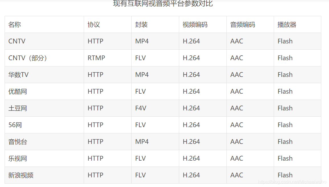 视频参数(流媒体系统,封装格式,视频编码,音频编码,播放器)对比