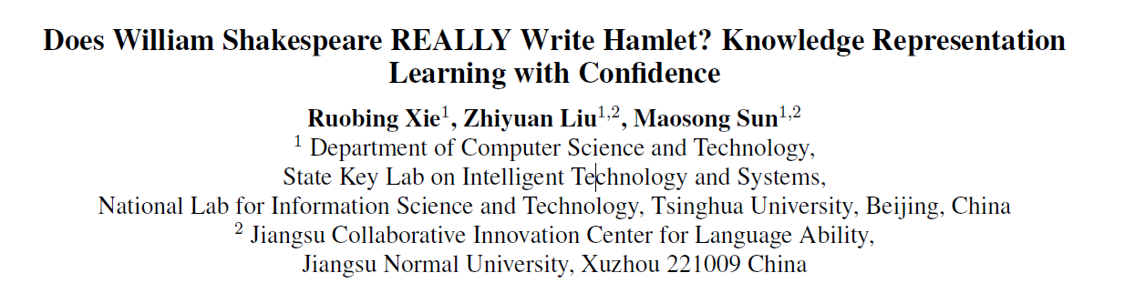威廉·莎士比亚真的写过《哈姆雷特》吗?基于置信度的知识表示学习