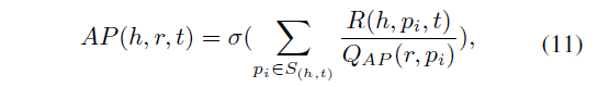 在训练过程中,先验路径置信度保持不变,不灵活,可能会受到KGs中存在的噪声和冲突的强烈约束。为了解决这个问题,我们提出了自适应路径置信度(AP),它可以根据所学习的嵌入灵活地学习关系路径质量。