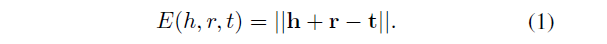 知识图的分布式表示是近年来研究的热点,其中基于平移的知识图表示方法是一种直观有效的知识图表示方法。TransE [Bordes et al.,2013]将实体和关系投射到连续的低维向量空间中,将关系解释为头尾实体之间的转换操作。通过平移假设可以得到h + r ≈t方程,能量函数定义如下: